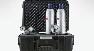 Die Alumini®-70-Druckdose enthält bis zu 112 Gaseliter bei einem Gewicht von nur ca. 1,2 kg. Damit eignet sie sich hervorragend für mobile Anwendungen, wie z. B. der Kalibrierung von Messgeräten oder In-situ-Überprüfungen. Zur Funktionsprüfung von Gasmessgeräten oder als Trägergas in der Gaschromatographie kann Alumini® 70 ebenfalls eingesetzt werden. Dank internationalem Universalanschluss 5/8"-18 UNF und der UN- und π-Zulassung ist die Alumini® 70 für den Luft- und Seefracht-Verkehr geeignet. Darüber hinaus überzeugt unsere Alumini® 70 als ressourcenschonendes Mehrweggebinde.