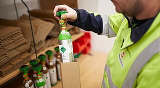 Bislang wurden Aluminium-Flaschen mit dem entsprechenden Gas befüllt und nach der Anwendung entsorgt. Insbesondere für Anwender, die Alu-Behälter im täglichen Gebrauch haben, bedeutet das viel Abfall. Die Westfalen Gruppe hat das Kleingebinde so optimiert, dass eine Wiederbefüllung bis zu 100-mal möglich ist. Das spart Ressourcen!