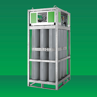 Übersteigt Ihr Bedarf eine wirtschaftlich sinnvolle Einzelflaschenversorgung, dann kommen Flaschenbündel zum Einsatz: Mehrere über Hochdruckverrohrungen miteinander verbundene Flaschen ermöglichen die längerfristige Gasentnahme: Der andauernde Wechsel von Einzelflaschen entfällt. Flaschenbündel der Westfalen Gas Schweiz GmbH bestehen üblicherweise aus zwölf Flaschen à 50 Liter. Auch Bündel können – ähnlich wie Einzelflaschen – zu einer Batterie verbunden werden.