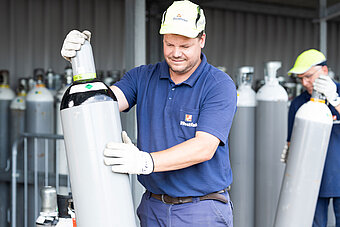 Die meisten Industrie- und Sondergase sowie Schweiss-, Schneid- und Lasergase werden standardmäßig in Typ 10- und Typ 50-Flaschen abgefüllt. Bei einigen Sonder- sowie medizinischen Gasen finden sich aber auch Sondergrössen. Kältemittel füllen wir überwiegend in Flaschen zu 12,3 und 61 Liter ab.