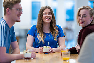 Und wir haben kleine Klassen; in manchen Kursen sind wir nur 18 Leute, das ist schon eine sehr intensive Betreuung. Wir können alle Fragen stellen, die Dozent*innen kennen auch unsere Namen."